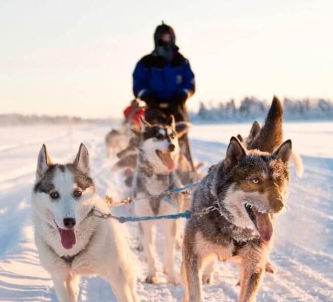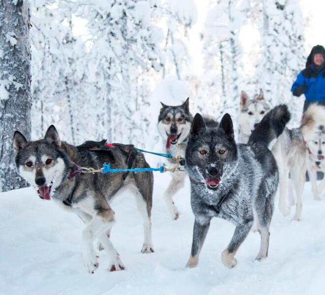 Dash across Lapland’s snowy fells on a thrilling husky sled ride.