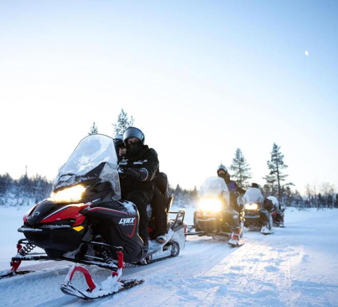 Experience Lapland’s winter firsthand on an exhilarating snowmobile safari.
